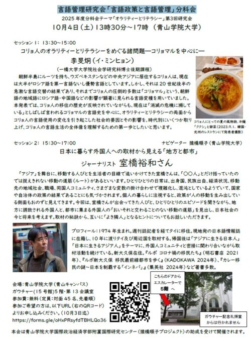 言語管理研究会「言語政策と言語管理」分科会 2025年度分科会テーマ「オラリティーとリテラシー」第3回研究会